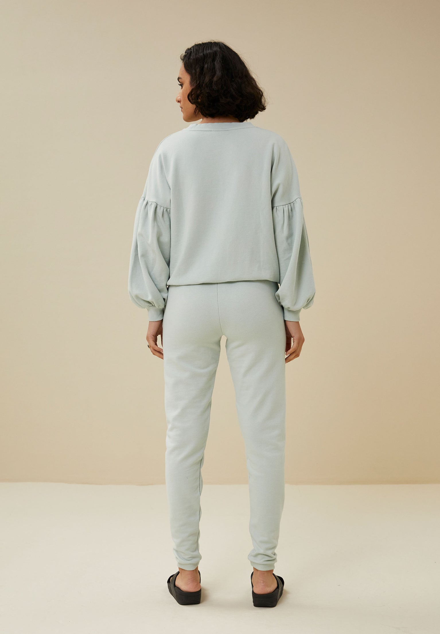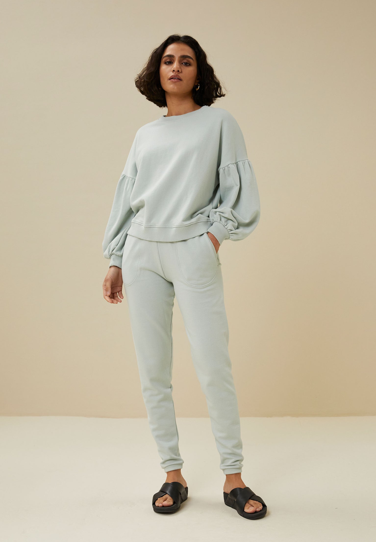 The jonas pant is a lovely sweat pant made of organic cotton and elastane, which ensures optimal wearing comfort. The sweat pant has 2 side pockets and a lovely straight fit. At the bottom of the trouser legs is an elastic band which creates a subtle puff effect. Combine with the aisa sweater for an optimal comfy look!