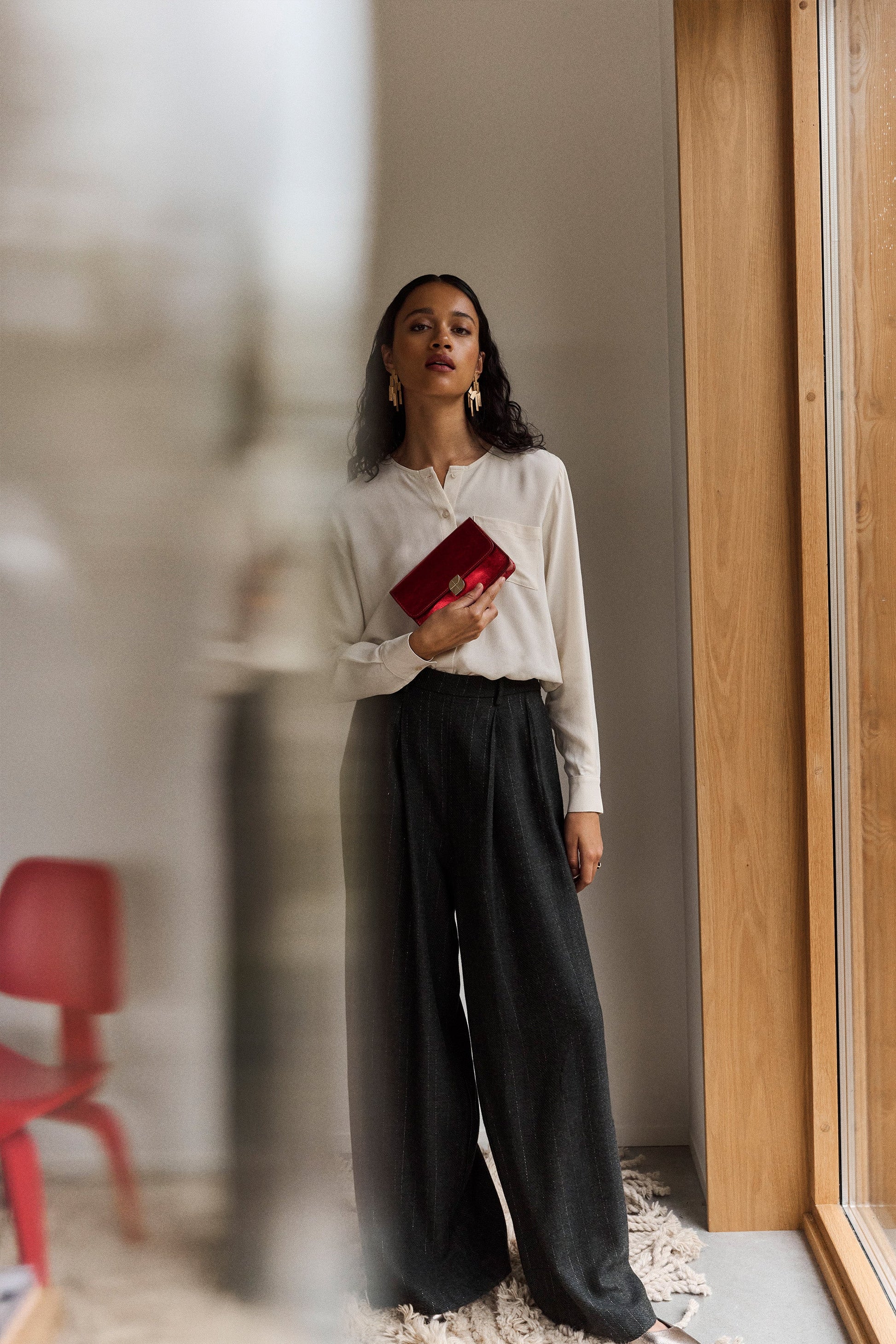 Experience ultimate comfort with the Sef pants, designed with a loose fit and a high waist that beautifully hugs your figure. The elastic waistband combined with a zip and button closure ensures a perfect and comfortable fit. The longer length adds a touch of refinement to any outfit. Model information: 178 cm tall, wearing size XS